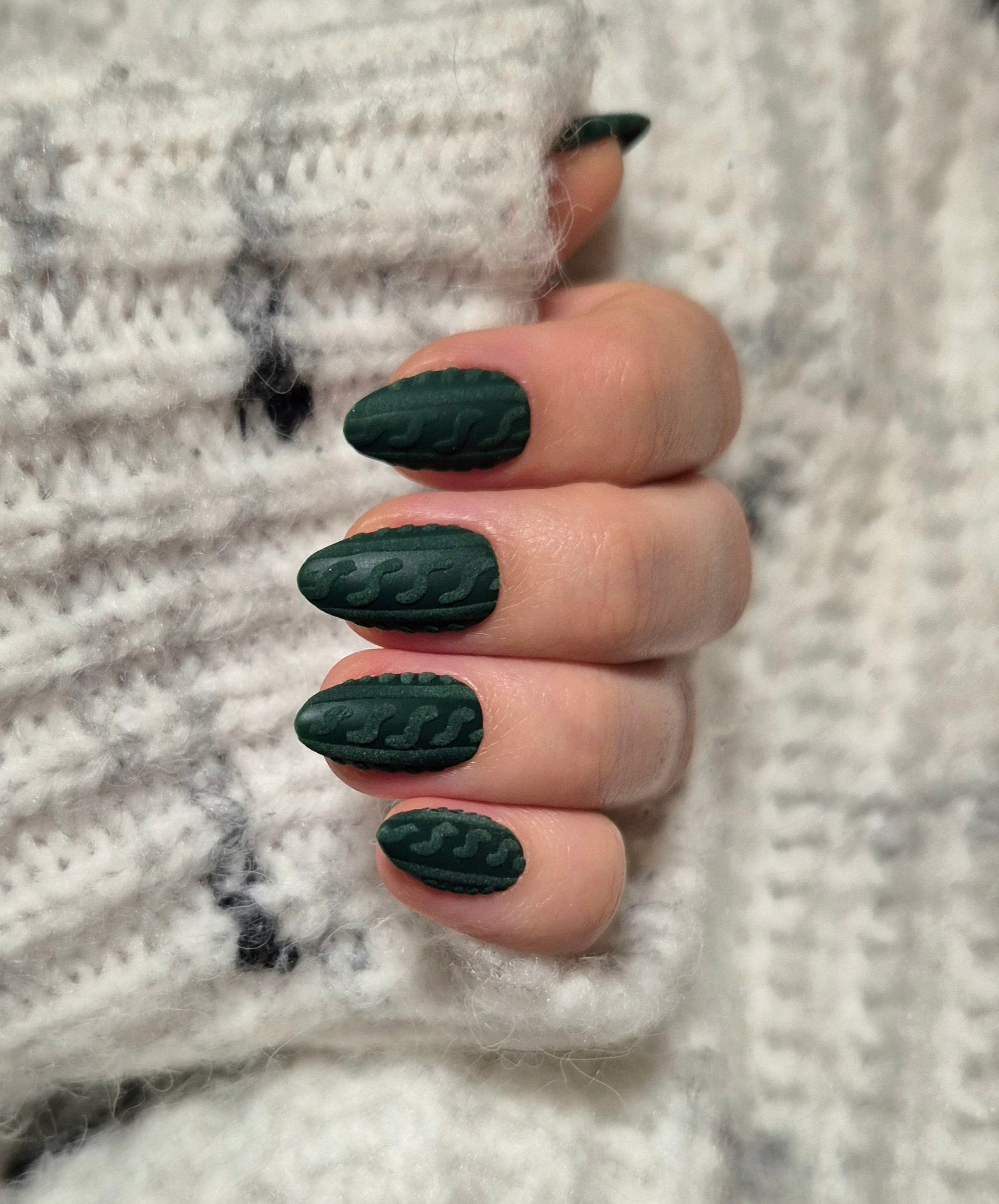 3D sweater texture nails in green.